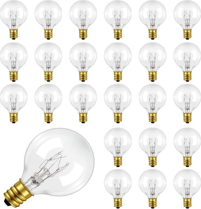 25 Pack G40 7 Watt Incandescent Replacement Bulbs, E12 Outdoor String Lights Bulbs, Warm White 2200K, IP44 Water Resistance, G40 Globe Bulb for Indoor Outdoor String Lights, Wedding, Party Decoration [Energy Class G]