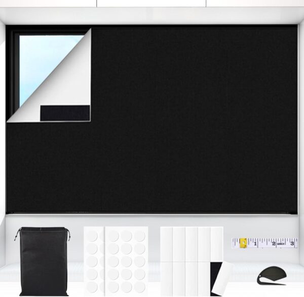 • EASY INSTALLATION: Our blackout blinds stick on requires no drilling, and is very easy to install and remove. First confirm the length and width of the installation location, cut the window blackout material, and use tape to secure it to the window to complete the installation. Lightweight and portable, comes with a storage bag, perfect for traveling, temporary housing or daily use.