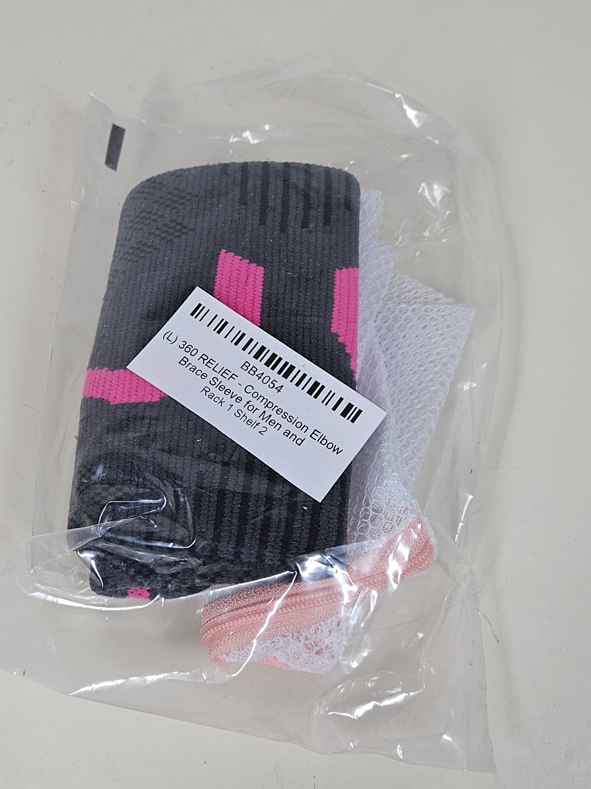(L) 360 RELIEF – Compression Elbow Brace Sleeve for Men and Women Support | Splint, Joint Pain Relief, Tendonitis, Tennis, Golf, Workout, Weightlifting | Large, Pink with Mesh Laundry Bag |
