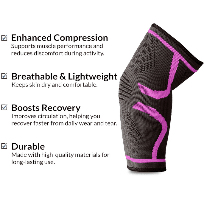 • Non-Slip Design: Ensures a secure, skin-friendly fit for both left and right elbows, keeping the sleeve in place throughout your workout.