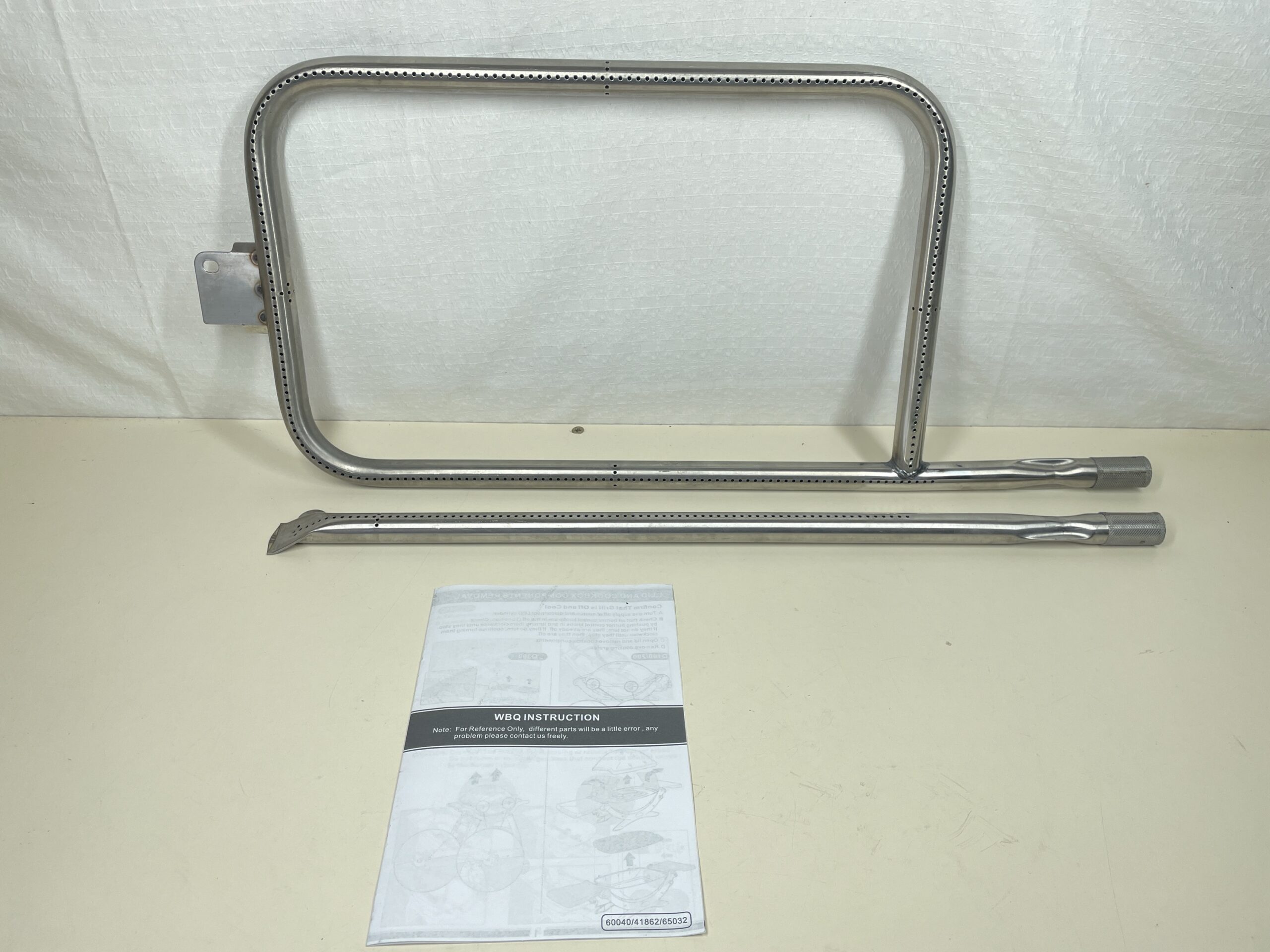 - Dimensions: Curved Burner – 60.7 x 26.4 x1.9 cm (Including the iron piece), Straight Pipe – 55.1 x 1.9 cm. Material: 304 Stainless Steel. Package: 1 curved burner, 1 straight burner and 1 OEM installation instructions.