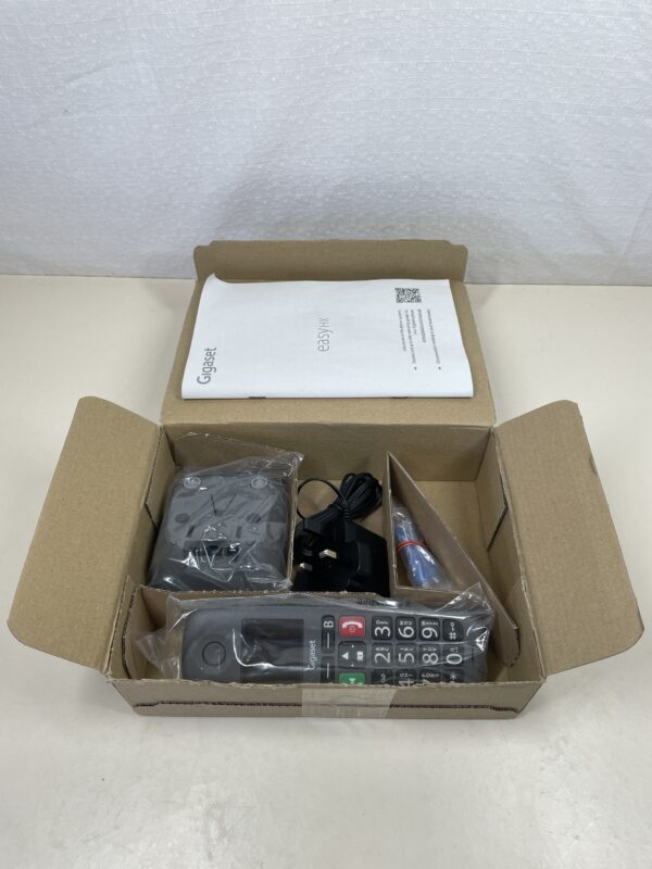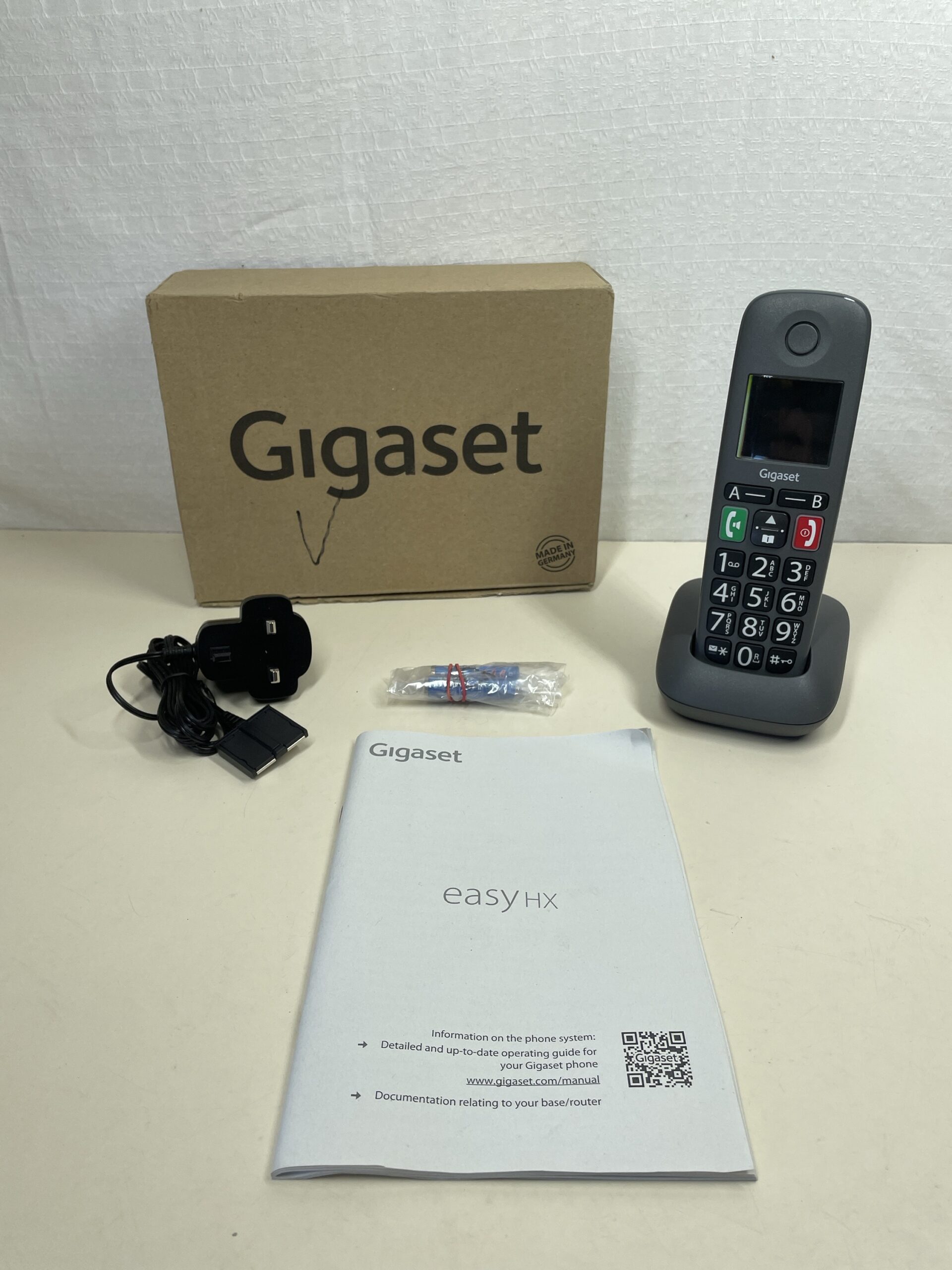 - BOX CONTENTS: 1 x handset Gigaset E294, 1 x plug in power adaptor, 1 x telephone connection cable, 1 x E294HX charging station, 2 x AAA rechargeable batteries (NiMH), 1 x battery compartment cover, 1 x operating manual
