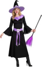 • 【Unique Design】Our women’ witch fancy dress up features a purple three-dimensional neckline design and a hooded design. The cuffs on both sides are designed with large sleeves. The detachable belt can be used to adjust the waist size as needed
