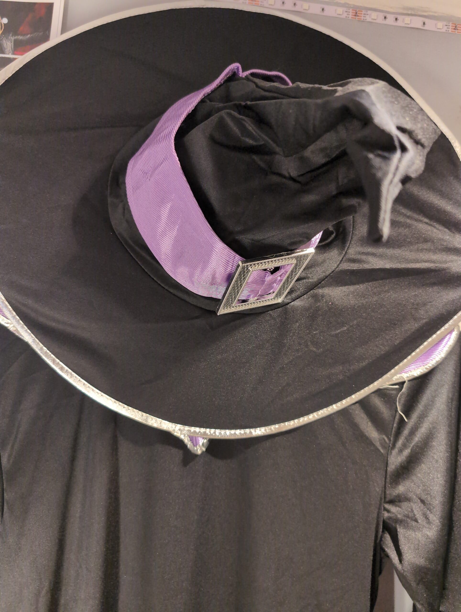 • 【Easy To Carry】 The purple-black witch hat is decorated with a square buckle and purple ribbon, which is mysterious and elegant. The brim is surrounded by an iron ring, which becomes a three-dimensional hat when unfolded. You can squeeze the brim, rotate it in the opposite direction, and then put it in a box or storage bag