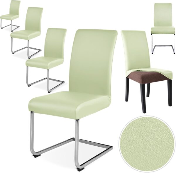 Alishomtll Stretch PU Chair Covers – 6 Waterproof Dining Chair Slipcovers – Green