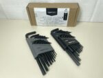 18 long hex keys (1/16″ (1.59 mm), 5/64″ (1.98 mm), 3/32″ (2.38 mm), 1/8″ (3.18 mm), 9/64″ (3.57 mm), 5/32″ (3.97 mm), 3/16″ (4.76 mm), 1/4″ (6.35 mm), 5/16″ (7.94 mm), 1.5mm, 2mm, 2.5mm, 3mm, 4mm, 4.5mm, 5mm, 6mm, 8mm); 18 short hex keys (1/20″ (1.27 mm), 1/16″ (1.59 mm), 5/64″ (1.98 mm), 3/32″ (2.38 mm), 7/64″ (2.78 mm), 1/8″ (3.18 mm), 5/32″ (3.97 mm), 3/16″ (4.76 mm), 7/32″ (5.56 mm), 1.27mm, 1.5mm, 2mm, 2.5mm, 3mm, 3.5mm, 4mm, 5mm, 5.5mm)