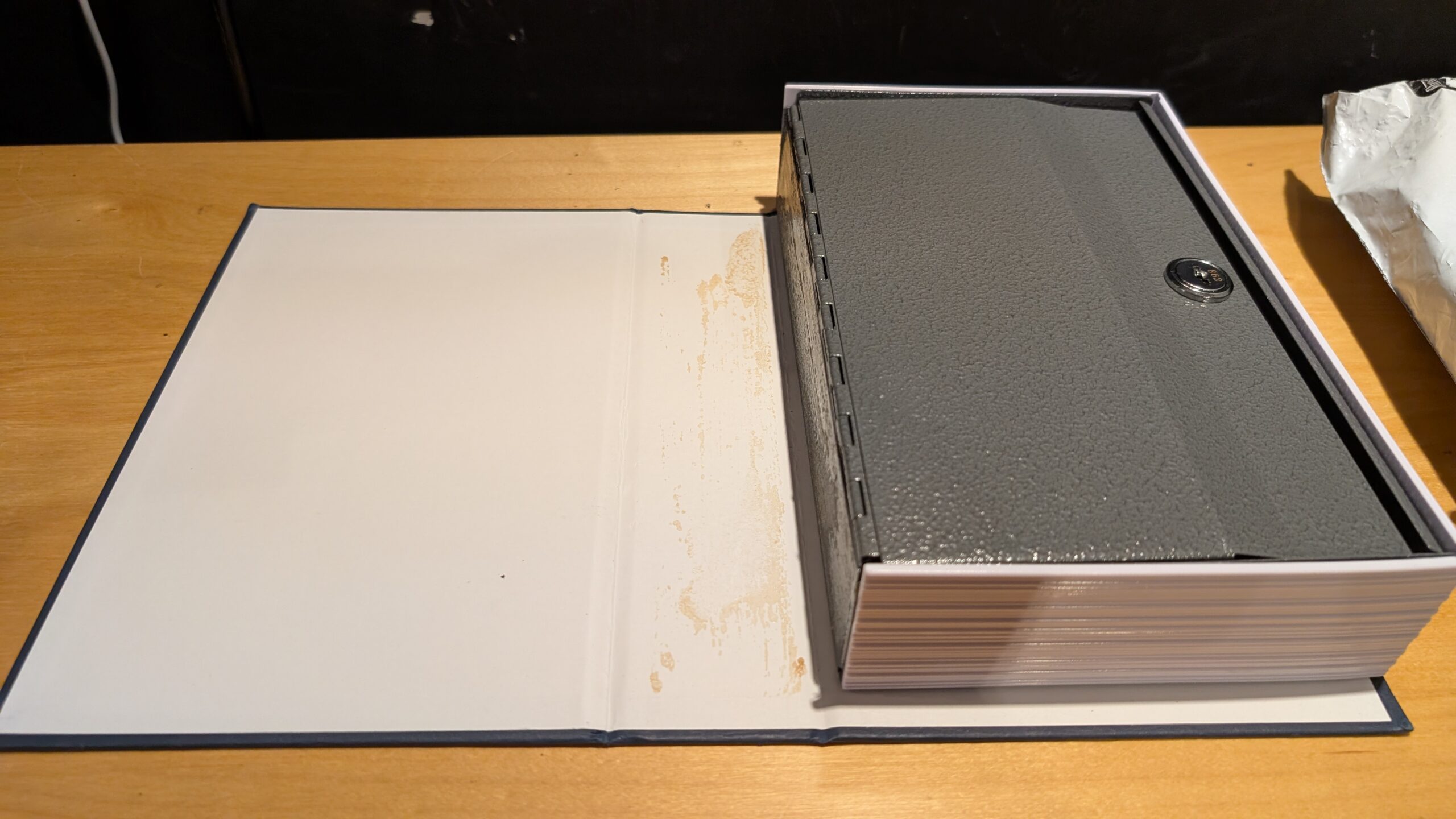 The book cover has come off of the lock box. Could be fixed with some super glue easily
