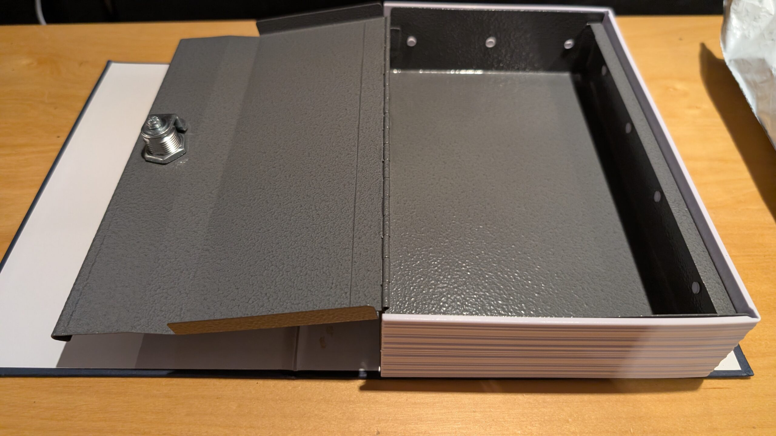 • Portable lock box that looks like a book, great for hiding small valuables on a bookshelf
