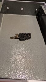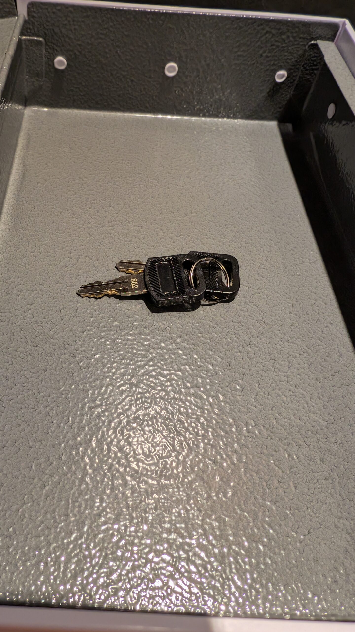 • Front cover lifts to reveal safe?s actual cover; key lock designed to deter theft; 2 keys included