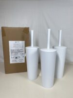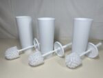 Amazon Basics Toilet Brushes and Holder Set with No-Slip Grip and Heavy Duty Bristles, Pack of 3, White (Previously AmazonCommercial Brand)