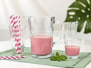 - 1227 ml fluted glass pitcher for serving beverages like margaritas, sangrias, lemonade or iced tea when entertaining or filling with juice or water for everyday use; sleek design with a thick, sturdy base