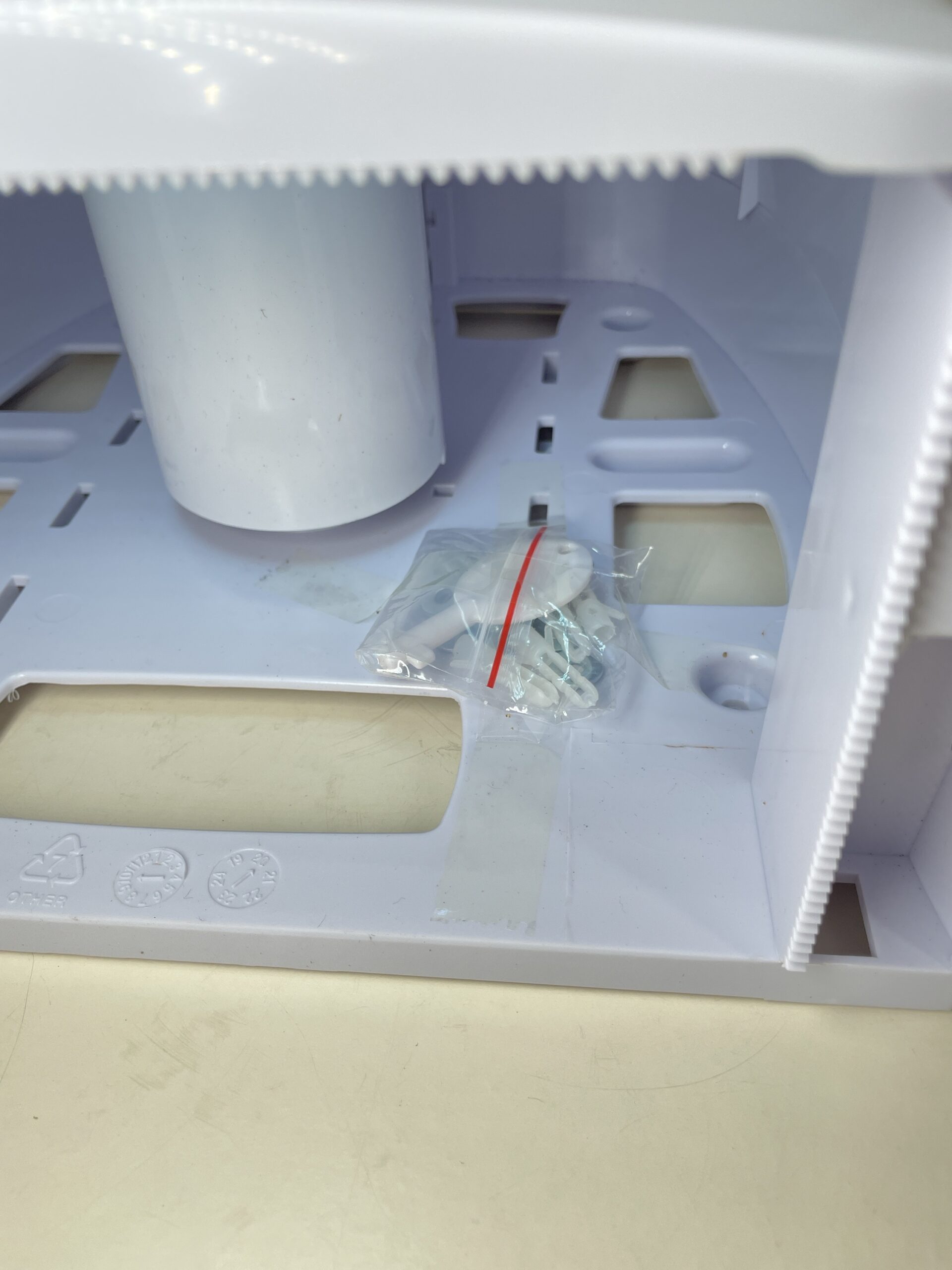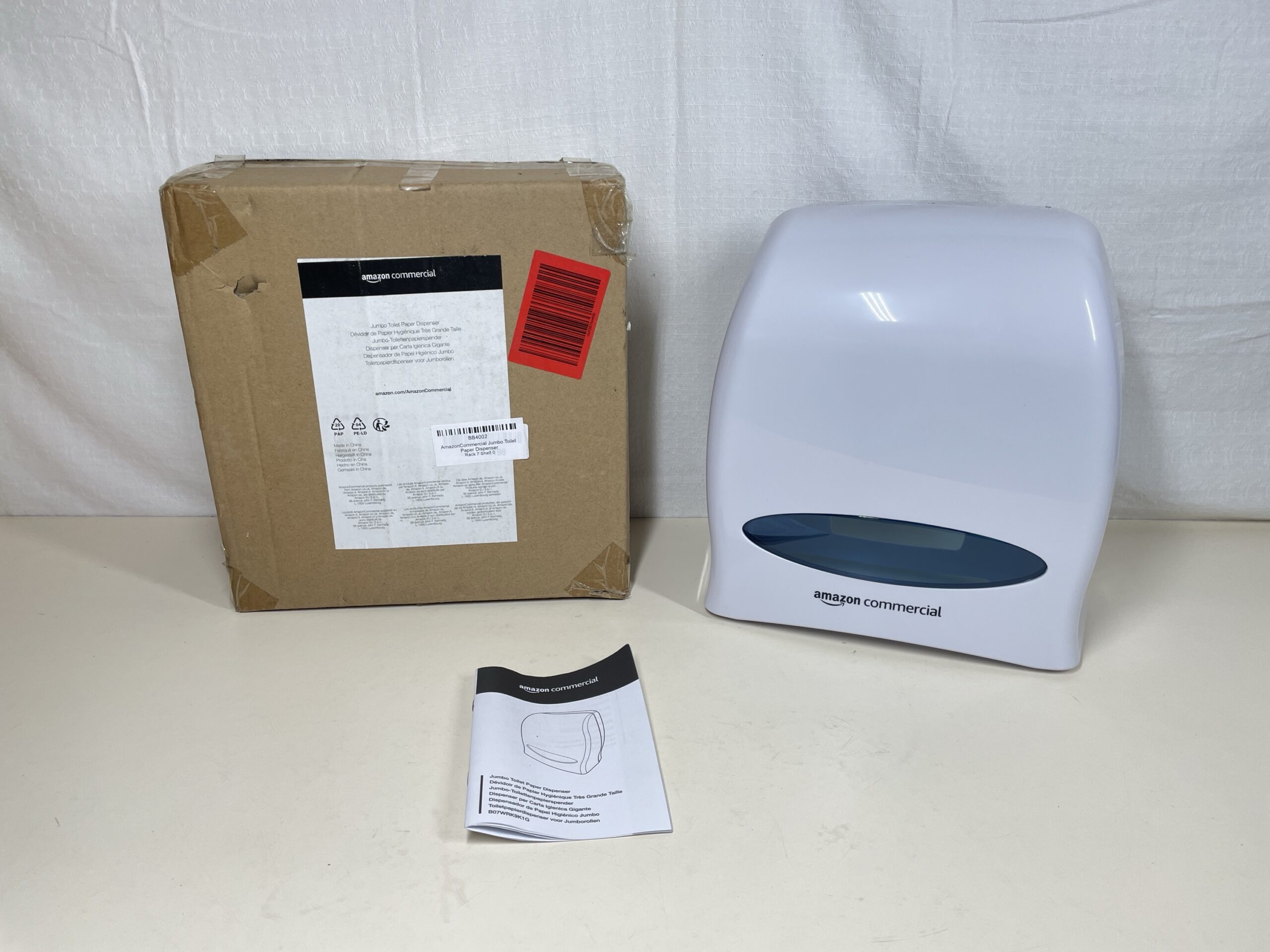 This AmazonCommercial Jumbo Toilet Paper Dispenser is listed as new other as the item’s box has been opened, but the dispenser inside is in a pristine condition, with no signs of previous installation or damage, with all fitting parts and the casing key included and in a pristine condition. Please see images.