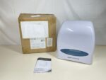 This AmazonCommercial Jumbo Toilet Paper Dispenser is listed as new other as the item’s box has been opened, but the dispenser inside is in a pristine condition, with no signs of previous installation or damage, with all fitting parts and the casing key included and in a pristine condition. Please see images.