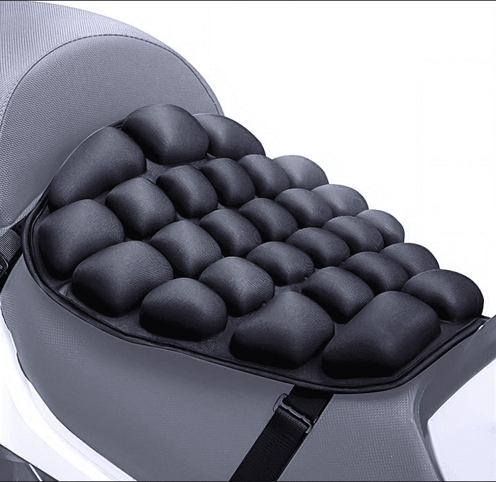 - The Auzkong motorcycle seat pad offers the option to fill it with either air or water, providing a cooling effect when filled with water. The innovative air convection technology creates an anti-gravity effect that improves your posture and alleviates pressure points on your buttocks, hips, and tailbone.