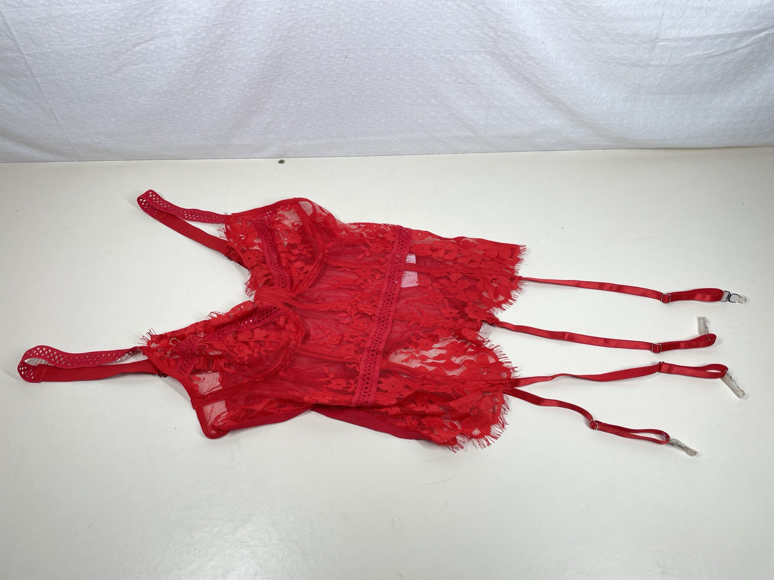 Package contents: 4-piece lingerie set for women includes (1 women’s underwired lace corset with garter belt, 1 pair of panties and 1 pair of lace leg rings).
