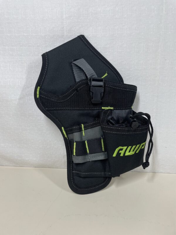 The AWP Drill Holster is designed to fit most drills and impact drivers. Constructed of water-resistant 600 denier polyester with reinforced stitching for durability. The 3 pockets hold bits and fasteners for easy access.The metal belt clip and tunnel loop provide tool belt attachment options.