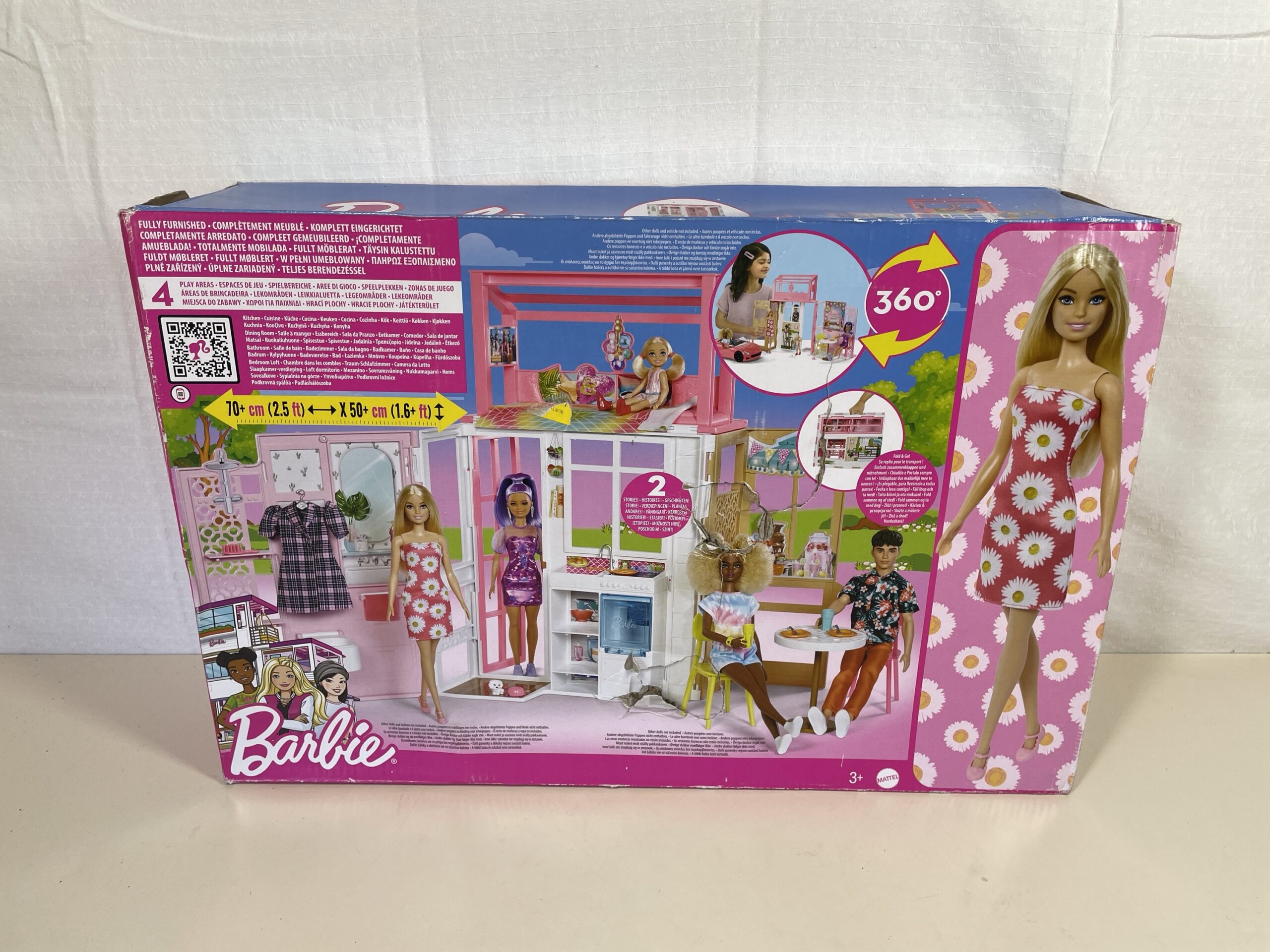 - This fully furnished Barbie dollhouse opens the door to all kinds of storytelling with 360-degree play, 2 levels and 4 play areas!