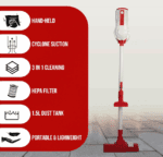 Special feature | CREVICE TOOL, DUSTING BRUSH and SUCTION INLET RUBBER FLAP, HEPA and Multi cyclonic function |