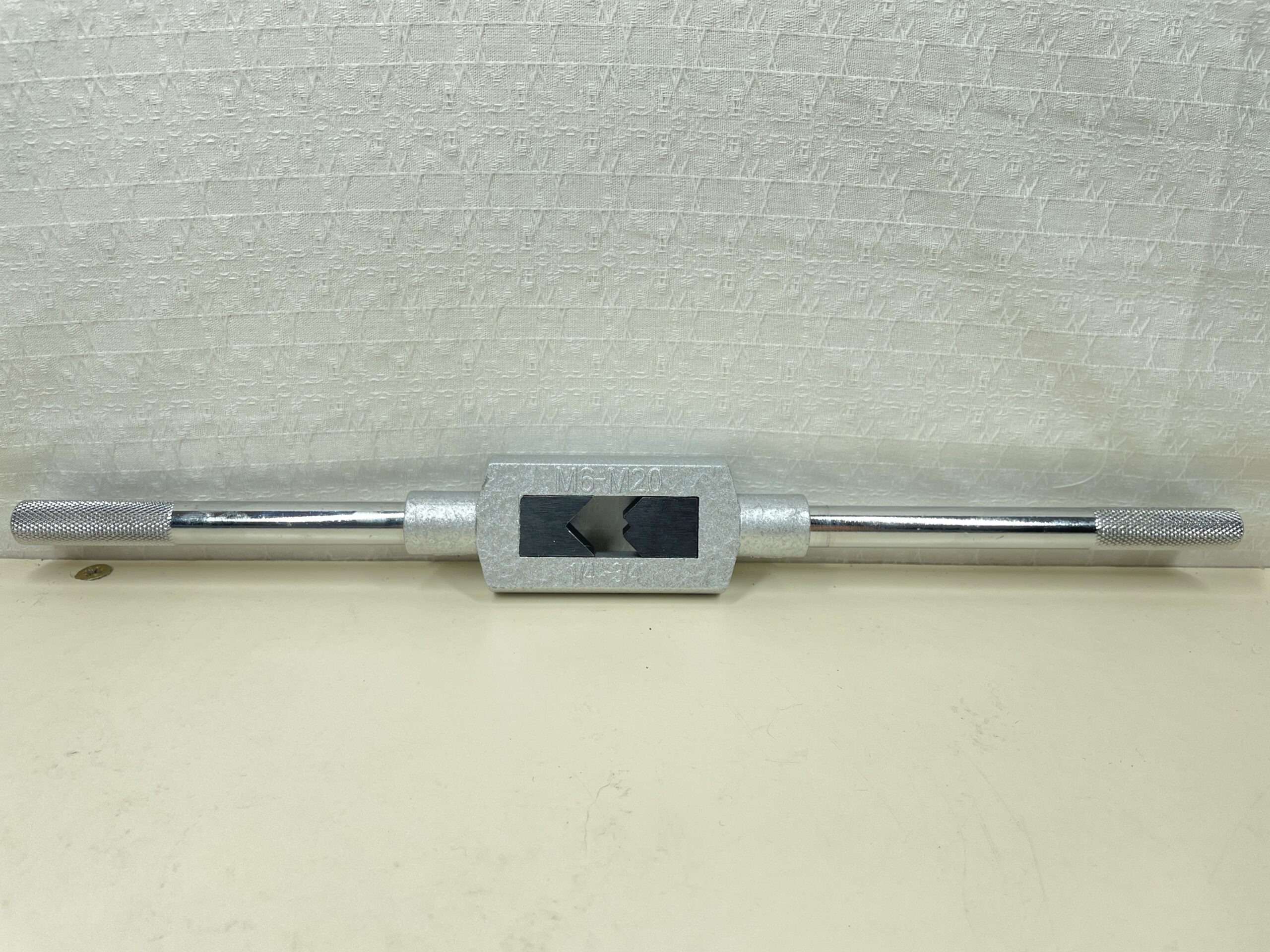 Steel handles, can be unscrewed for taps M6 – M20. Steel handle width 325 mm. Holding head made of die-cast zinc for attaching the tap. Also suitable as a replacement tap wrench for tap set. 1900
