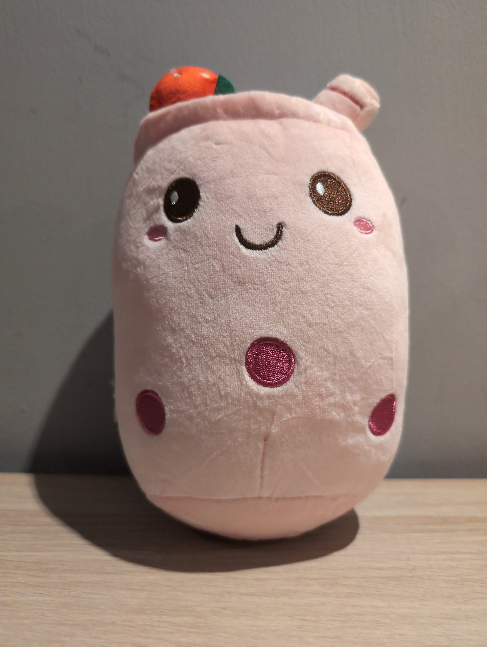 Soft and cuddly cartoon boba tea plush doll in lovely pink colour. Perfect as a decorative pillow or comfort toy for tea lovers of all ages.