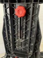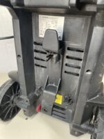 The handle on the high-pressure washer can be easily pivoted open and closed, and its height can be adjusted as needed. All accessories, such as the hose and the washer container, can be secured to the body of the tool to reduce the amount of space required for storage.