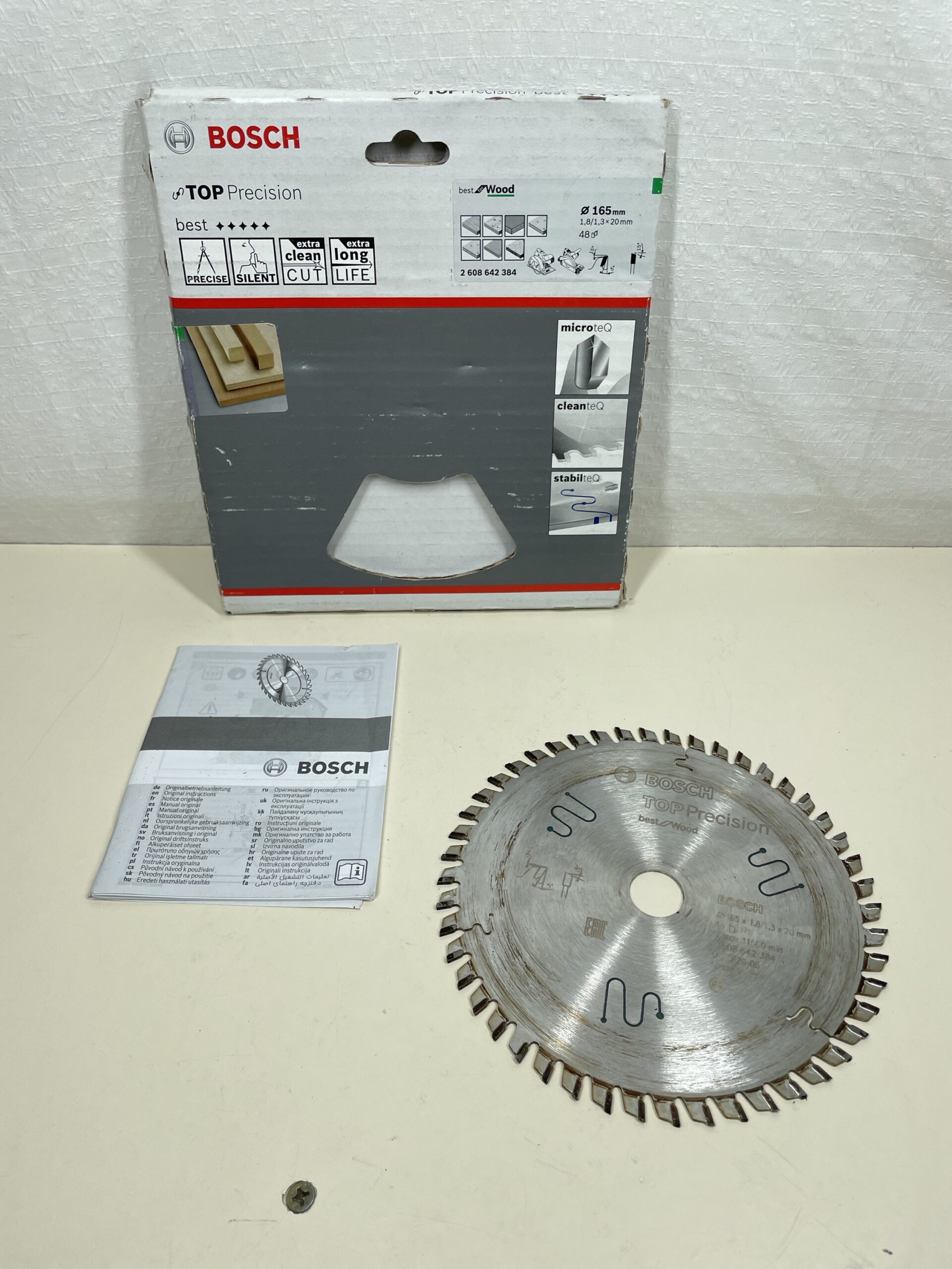 | Included Components | 1 x Top Precision Best for Wood Circular Saw Blade – Ø 165 mm, bore Ø: 20 mm, Cut width: 1.8 mm, number of teeth: 48 |