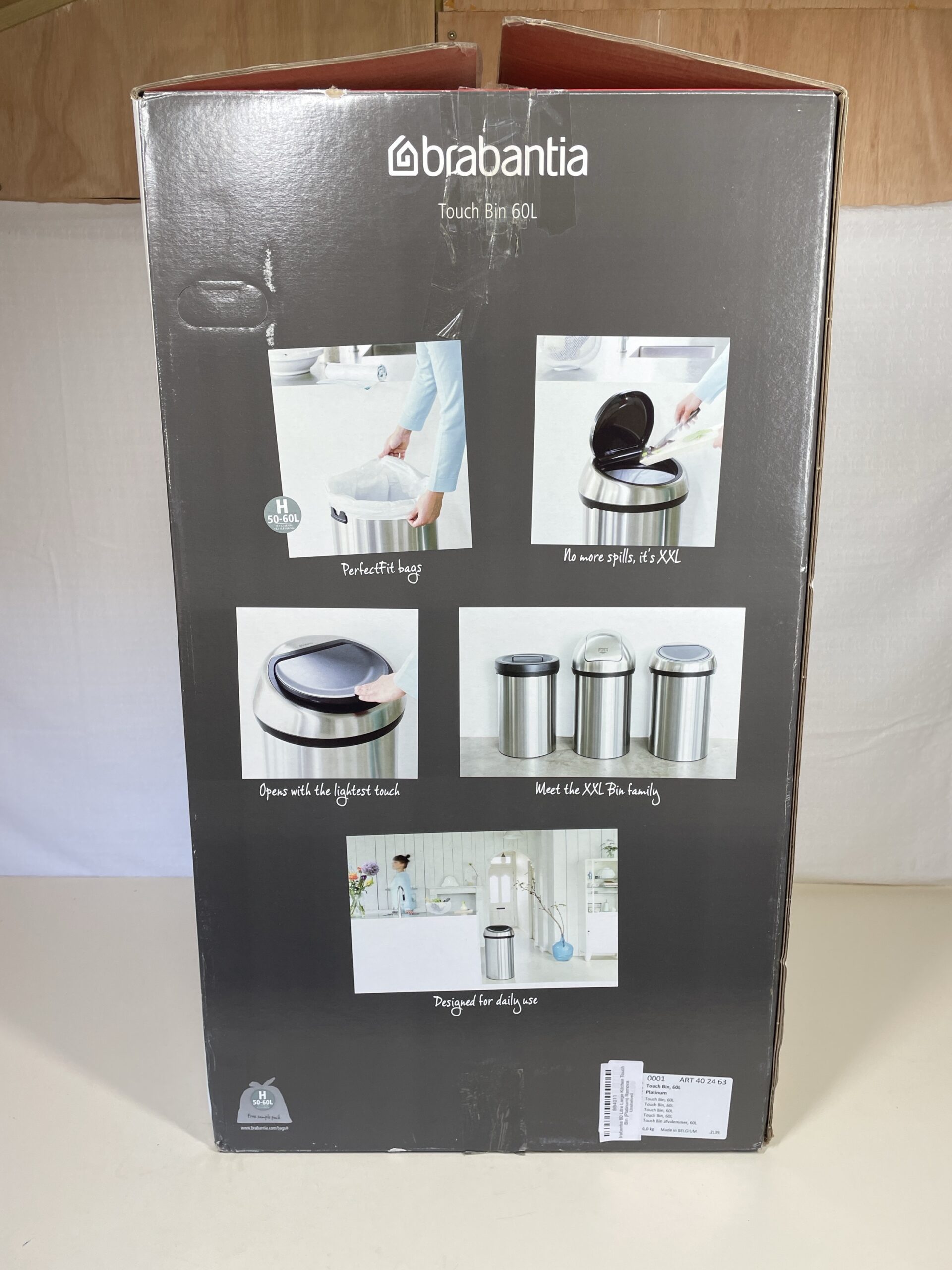 The 60 L Touch Bin is easy to use. The whole lid simply flips off when it’s time to change the inner bag and Brabantia’s PerfectFit tie-tape rubbish bags (Size H) are easy to fit and cause no ugly overwrap. And when you need to move the big bin it’s easily done, as the sturdy carrying handle makes the job simple and trouble-free.