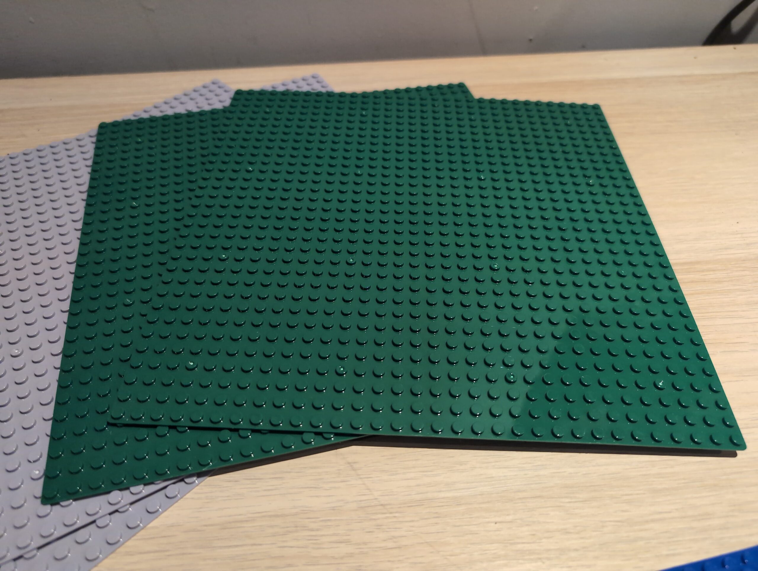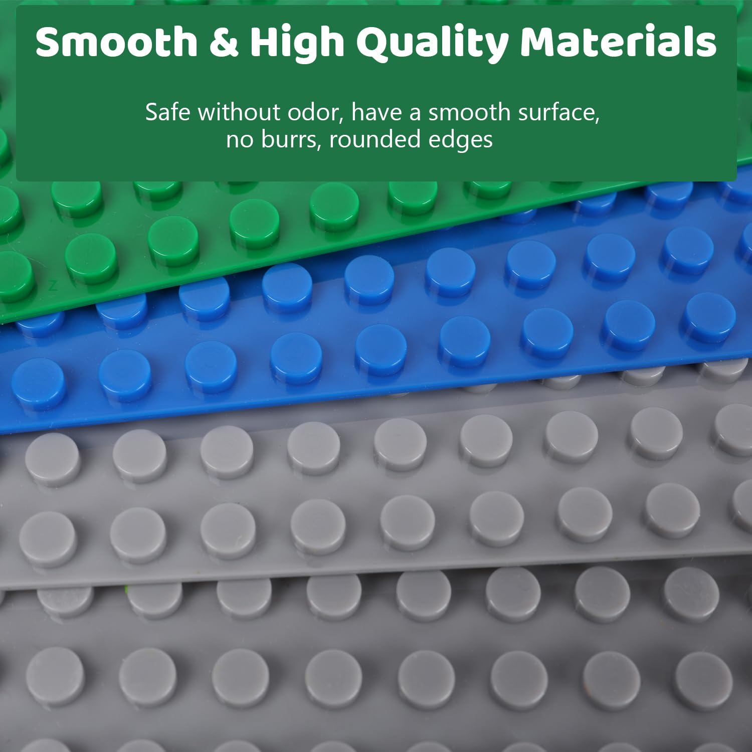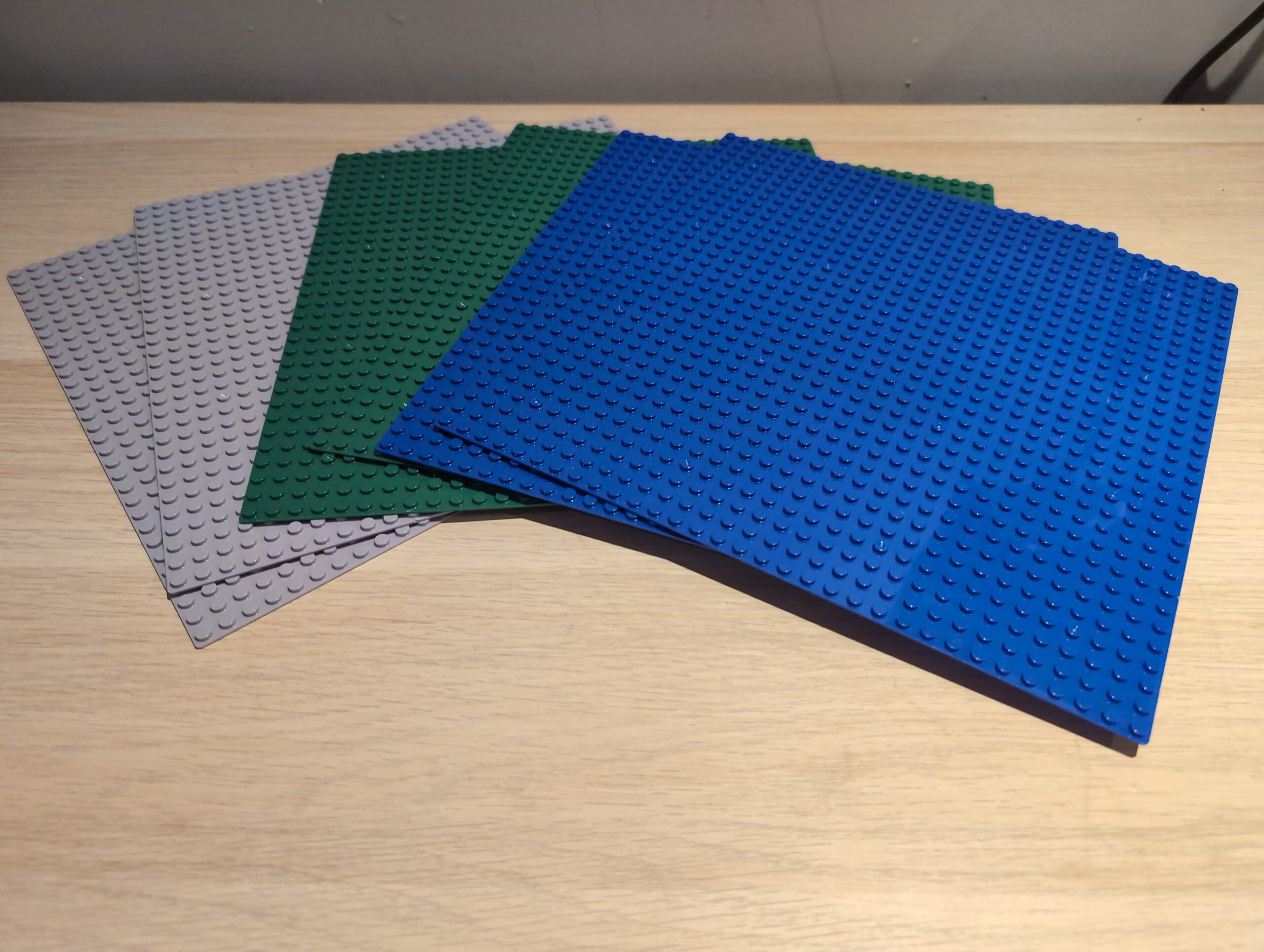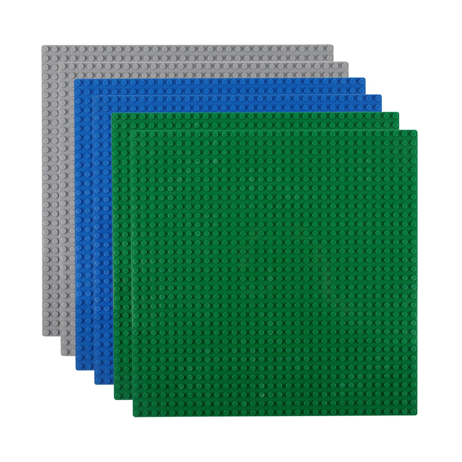 - Pack of 6 baseplates (2 green, 2 blue, 2 grey)