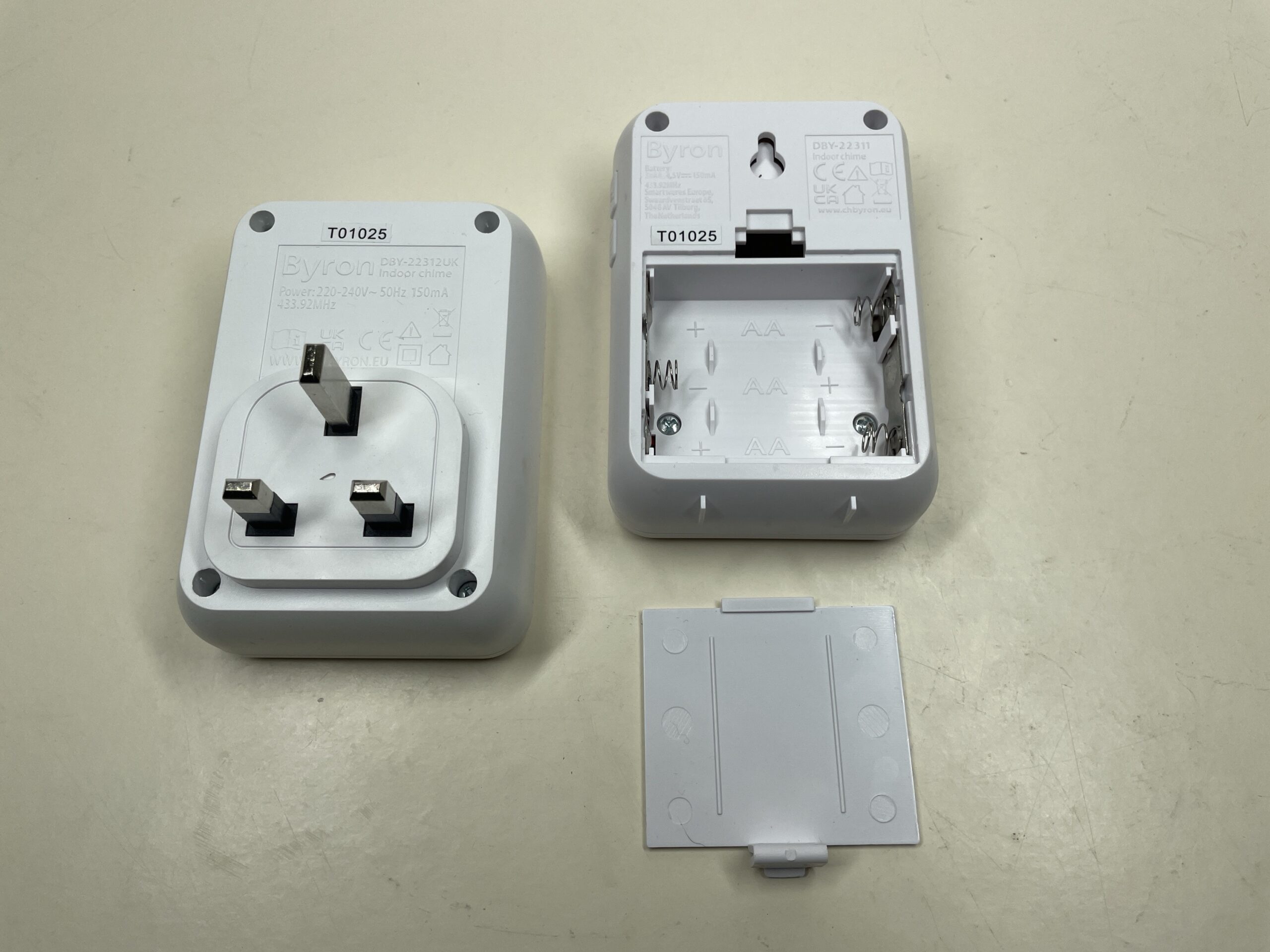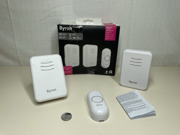 Byron Wireless Doorbell Set, Portable Battery-powered Chime & Plug-In Chime, 150m Range in open field, 16 Melodies, DBY-22314UK