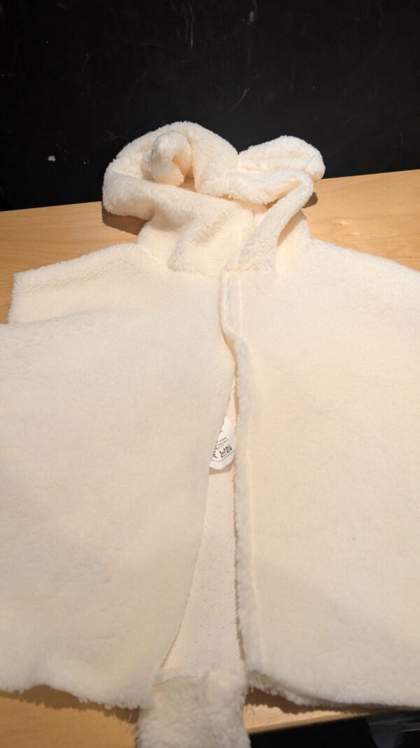 • Generous fit fur lamb tabard costume with attached hood and tail.