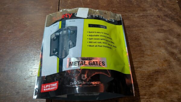 Adjustable self-closing hinges for gates up to 66lb (30kg) Ideal for pool and child safety gate applications D&D-patented tension adjustment Won’t rust bind or sag UV-stabilized industrial-strength polymer construction Self-lubricating durability requires no maintenance Internal stainless steel closing spring Sold as pairs