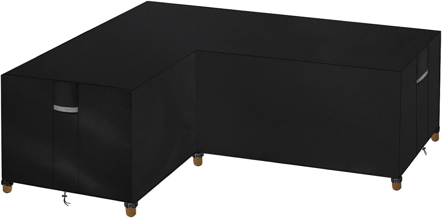 Dokon L-Shape Garden Furniture Covers Waterproof Heavy Duty 600D Oxford Fabric Windproof Anti-UV Outdoor Rattan Corner Sofa Cover with Air Vent, Patio Sofa Covers (210x260x80cm) – Black