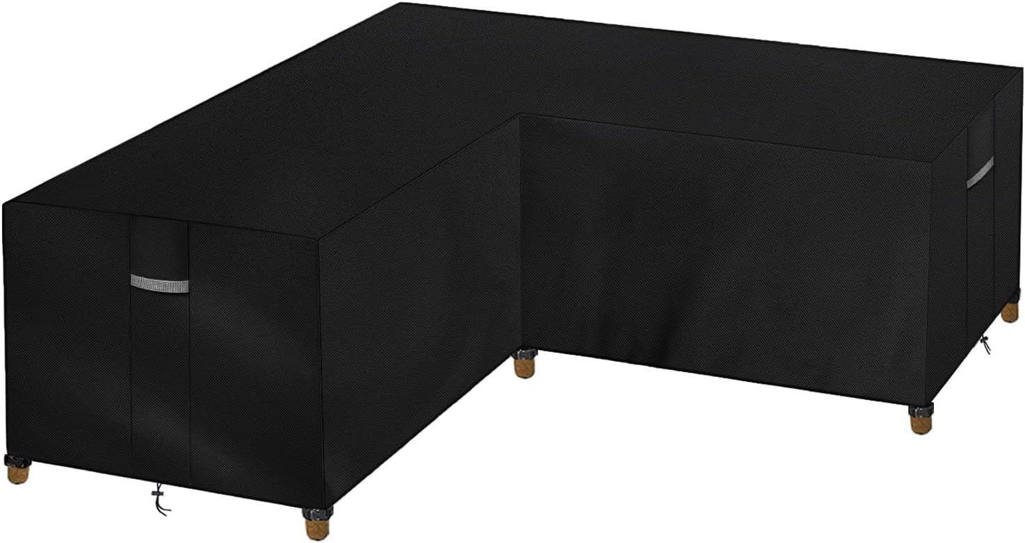 Dokon V-Shape Garden Furniture Covers Waterproof Heavy Duty 600D Oxford Fabric Windproof Anti-UV Outdoor Rattan Corner Sofa Cover with Air Vent, Patio Sofa Covers (250x250x110cm) – Black