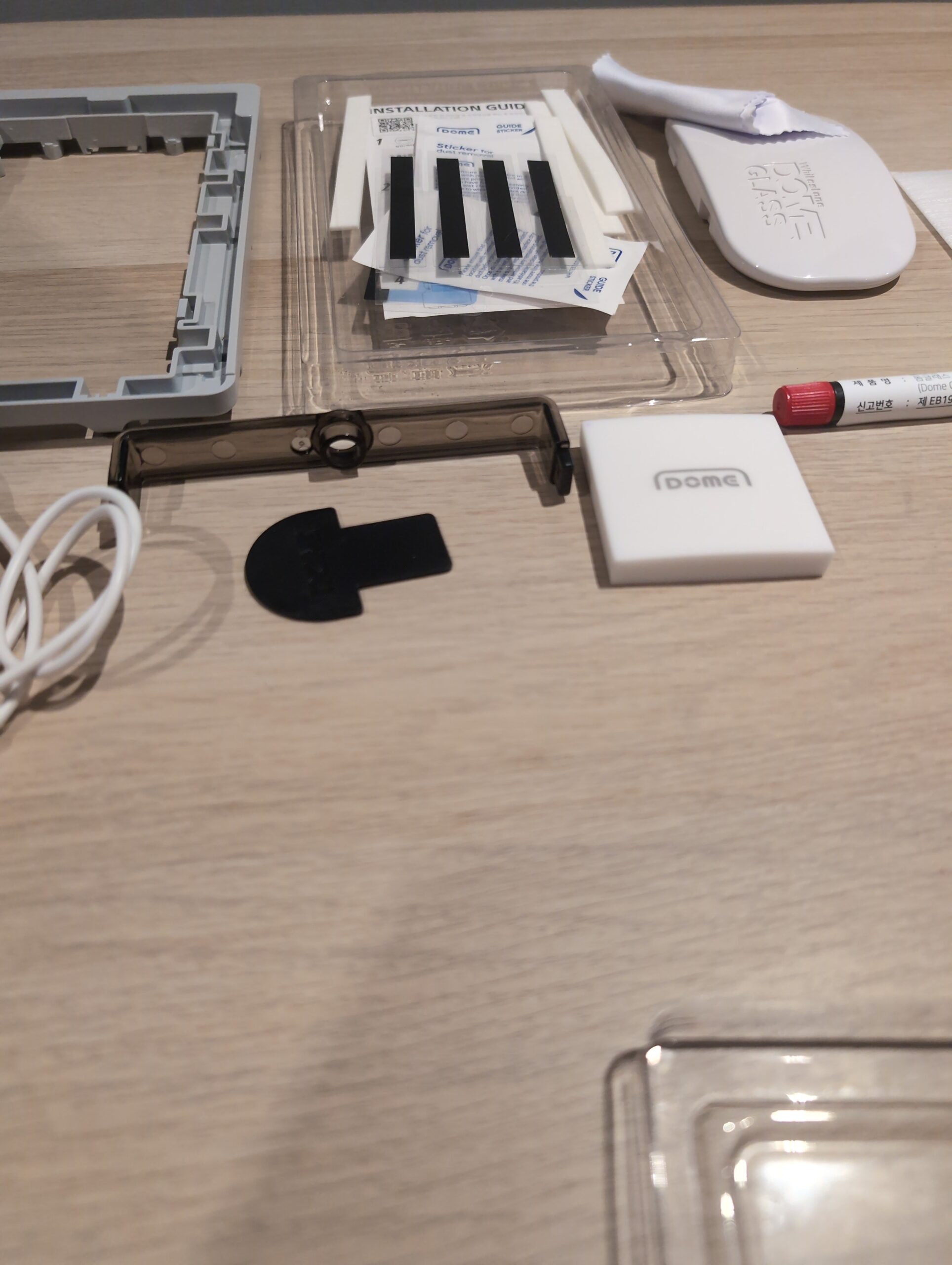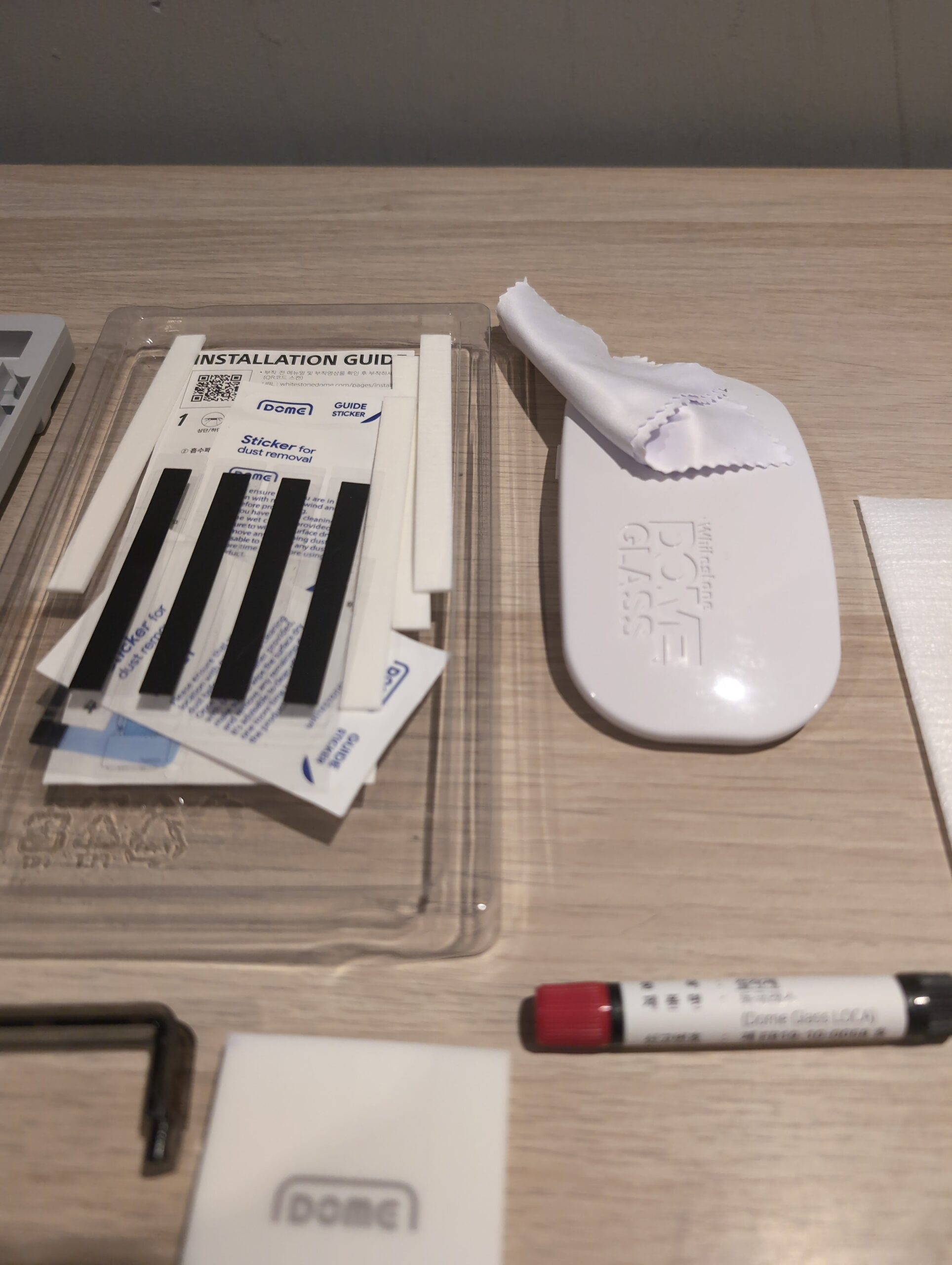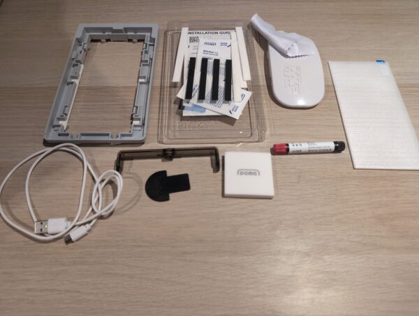 The box has been opened and one of the screen protectors has been removed. Everything else is present in the pack