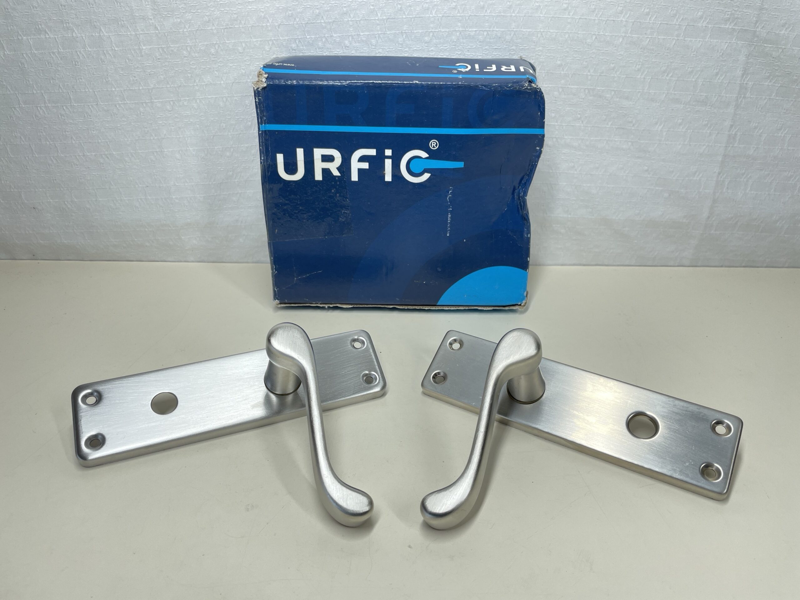 Door Handle for Internal and External Doors. Urfic Victorian Scroll Set of 2 Satin Nickel Bathroom Lock on Plate. Sleek Design Levers for Wooden Kitchen and Bedroom Interior UPVC Exterior Doors.
