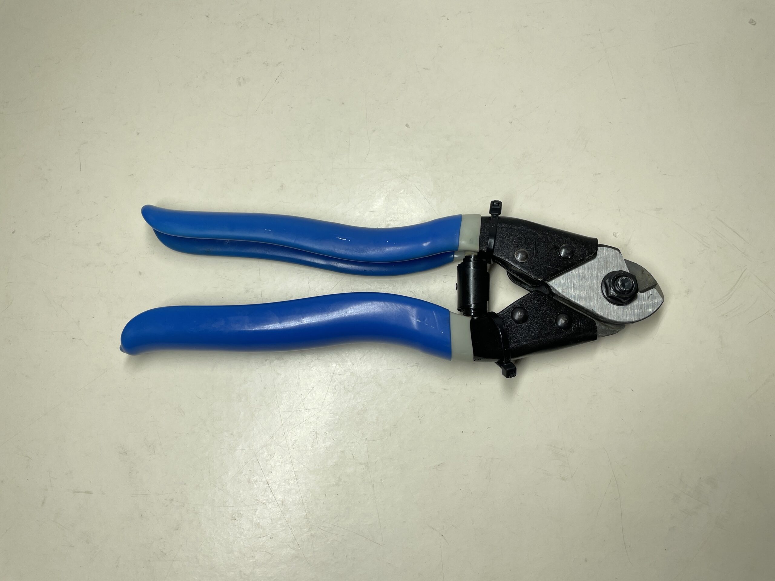 SK5 high carbon steel blades hardened, tempered and polished. Spring-loaded handles with vinyl grips and safety lock.