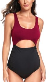 EastElegant Maternity Cutout One Piece Swimwear Pregnancy Bathing Suit, Black+Red, Small