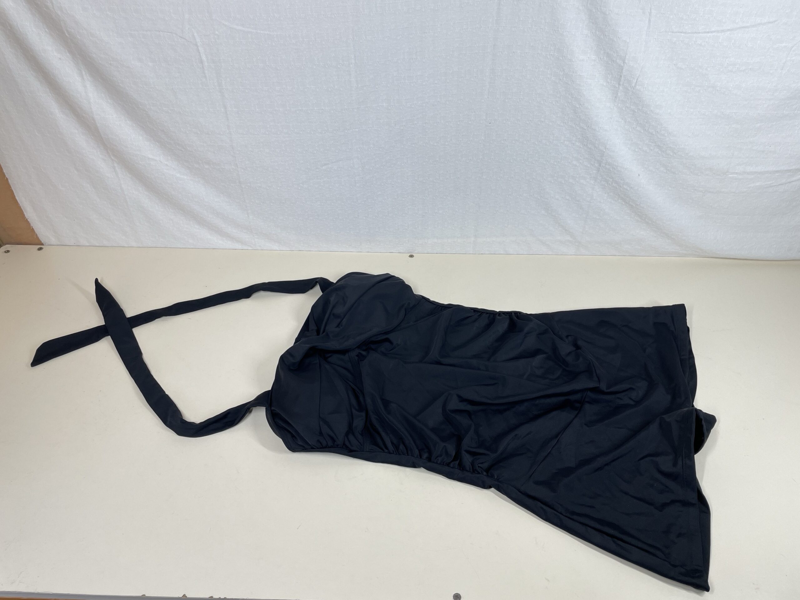 This Black Halter Neck One Piece Swimsuit is listed as new without tags as it shows no signs of previous wear or damages and has it’s hygienic strip still in place, but it has no tags. Please see images.