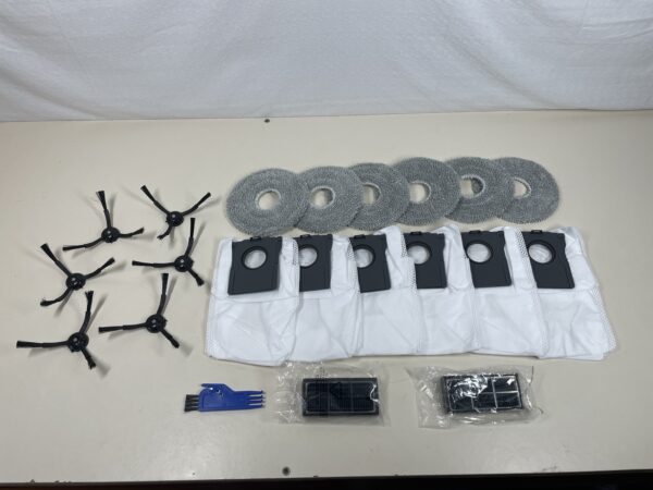 Package Content: The package comes with 6 x Side Brushes, 6 x Mop Pad Cloths, 6 x Dust Bags, 2 x HEPA Filters, 1 x Cleaning Brush