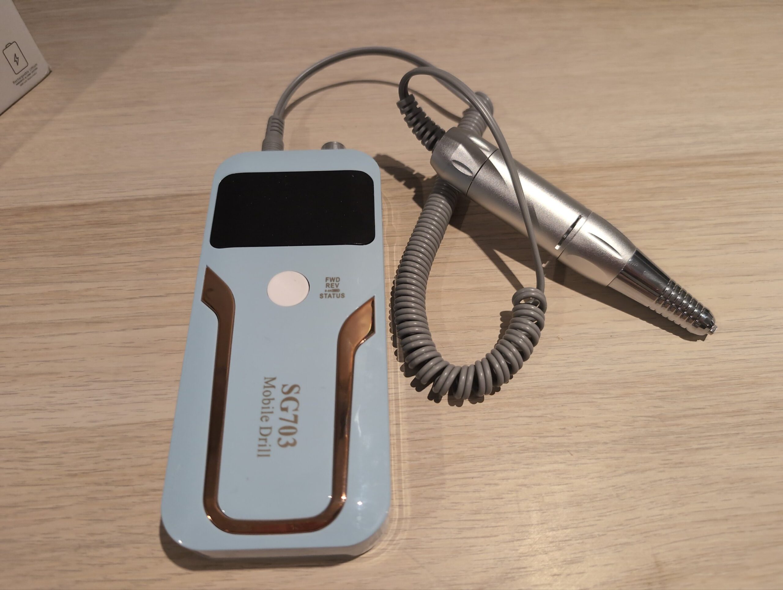 The nail drill has some signs of use, a few light scratches on the body and the holder. It is also missing all the bits but it is in perfect working condition otherwise