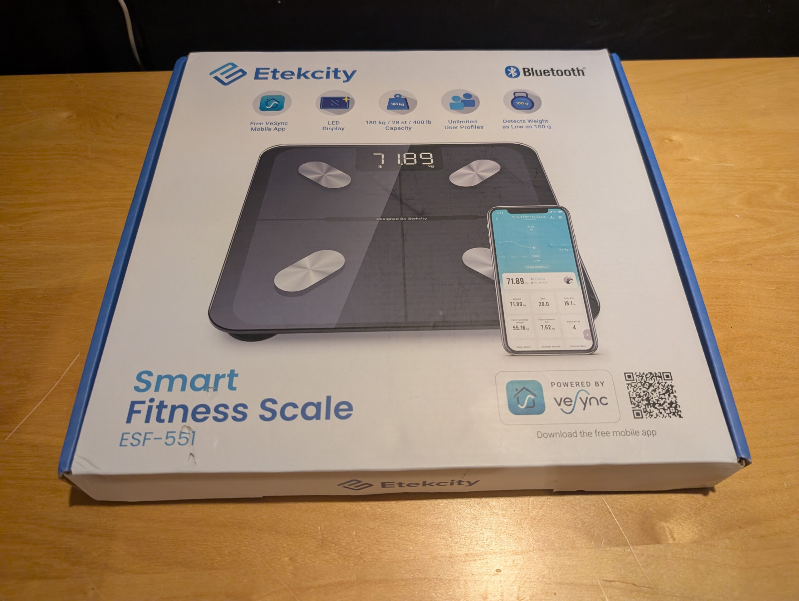 The box has been opened and the battery strip has been taken out. The scale is in good working condition