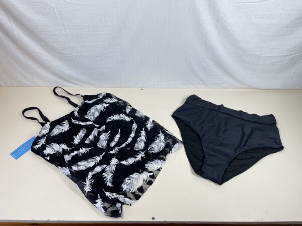 This FLYILY 2 Piece Mesh Tankini Swimsuit is listed as new with tags as it has been removed from it’s bag but is in a pristine condition, showing no signs of previous wear or damages, it’s tags still attached and the hygienic strip still securely in place. Please see images.