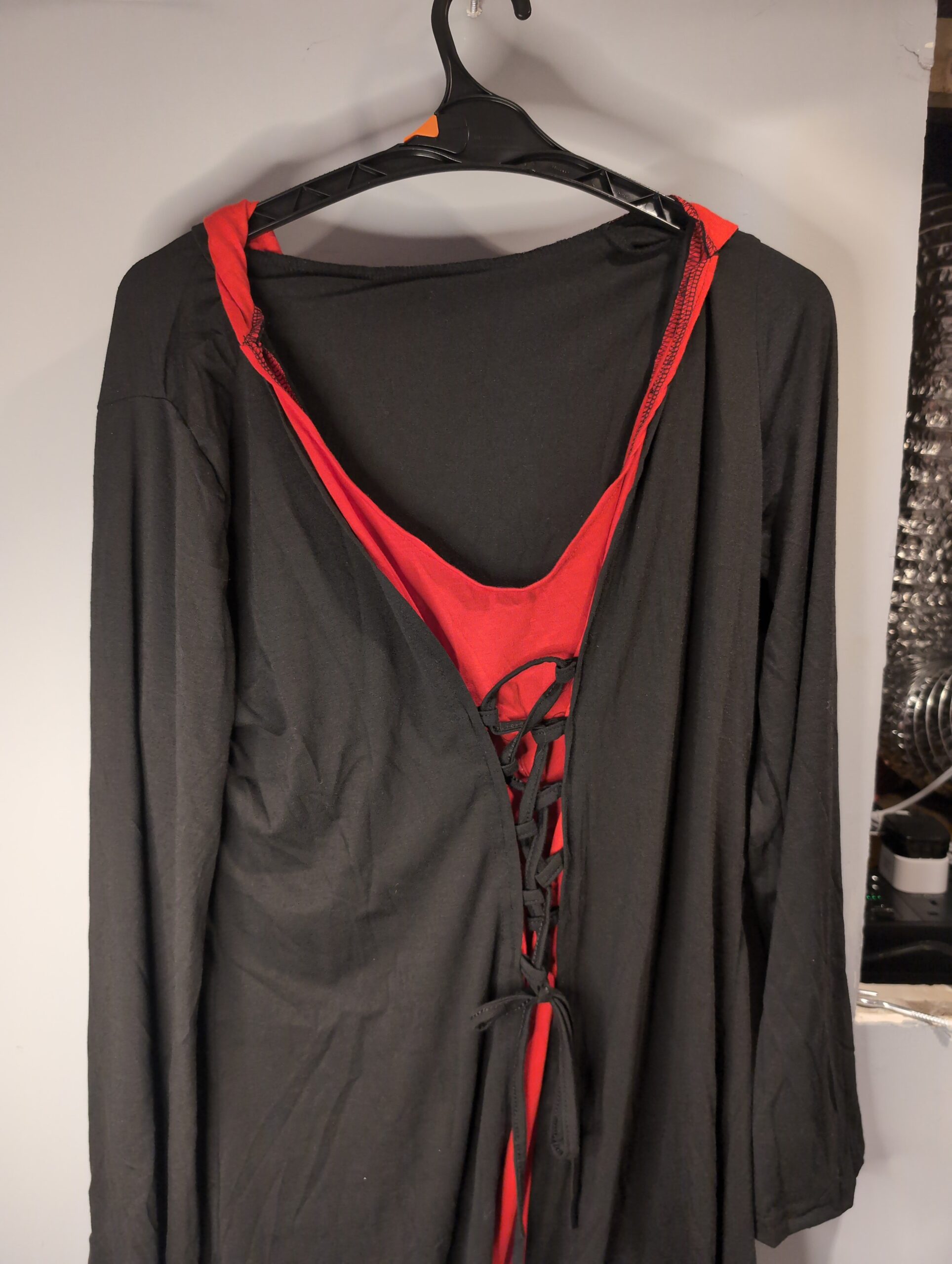 Halloween Vintage Witch Dress Black and Red, 2XL, Witch Hooded Dress Witch Costum, Womens Renaissance Medieval Costume