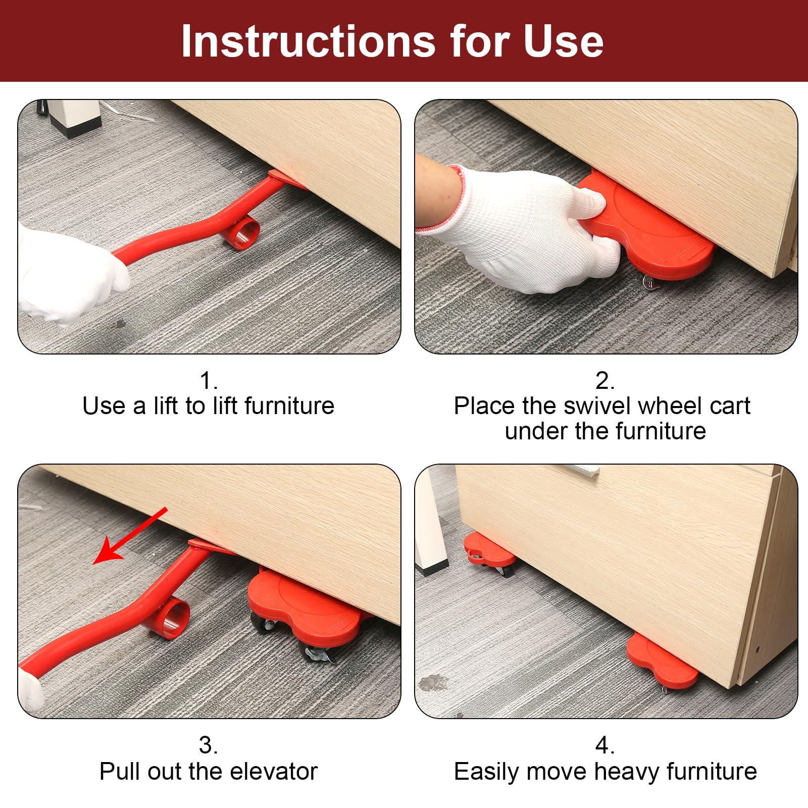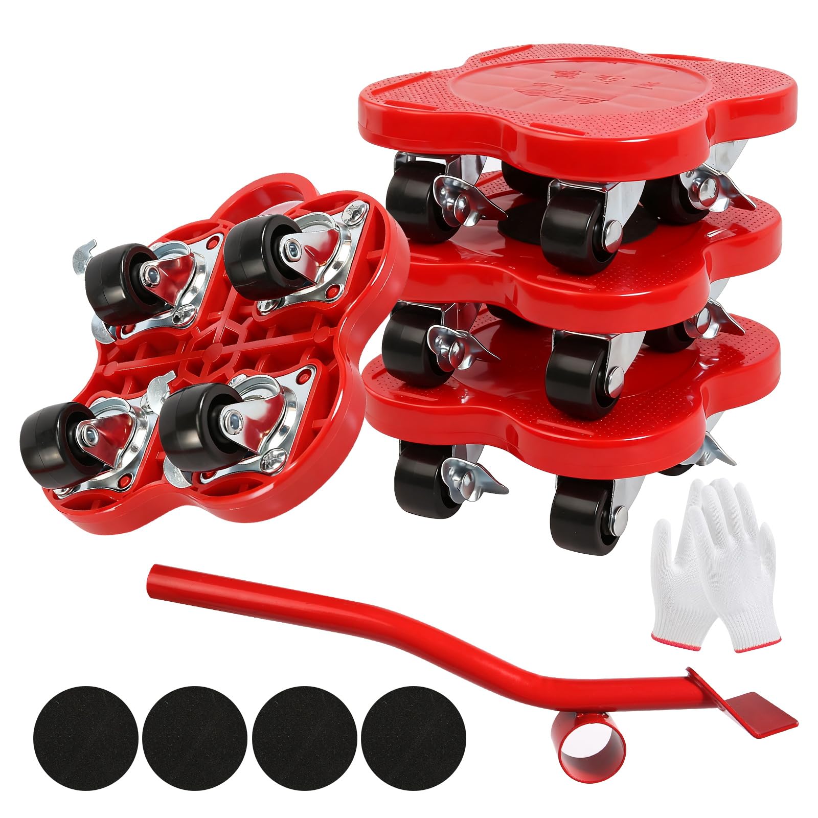 Heavy duty 4-wheel furniture movers designed to transport heavy items safely and easily. Perfect for moving appliances, furniture, and equipment around the home or workplace.