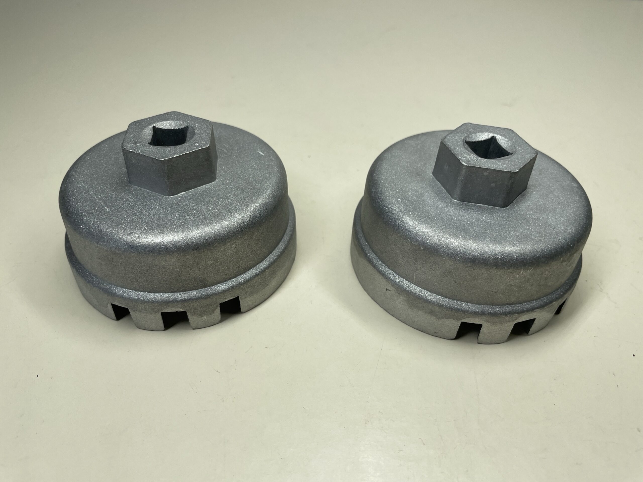 - Application: Oil filter housing cover key End Cup Removal Tool 3/8” Drive, 64 mm inner diameter with 14-grooves for a cozy no-play, no-slip fit. There are 4-slots at the bottom that perfectly match the tabs of the oil filter cover for Toyota and help prevent slipping when you unscrew the oil filter housing with enormous force using a socket wrench or adjustable wrench.