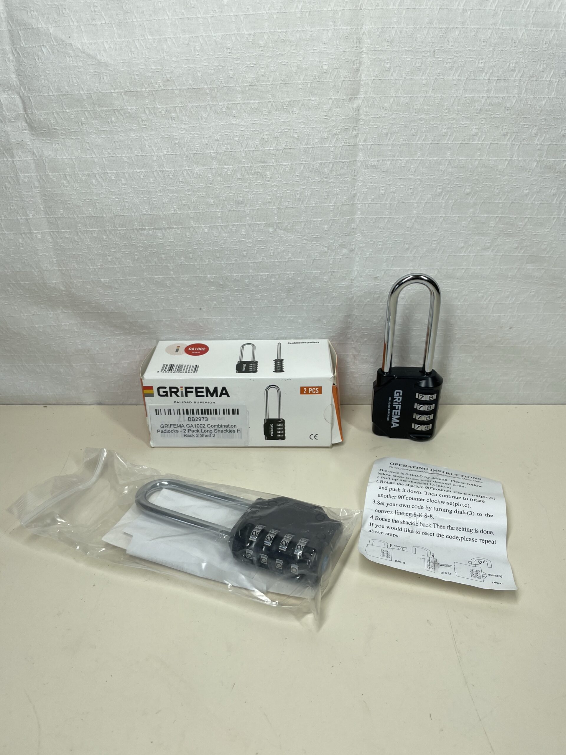 GRIFEMA GA1002 Combination Padlocks – 2 Pack Long Shackles Heavy Duty – 4 Digit Code Weatherproof Padlock for School, Gym Locker,Fence, Garage, Gate, Storage Case, Toolbox & Shed , Black