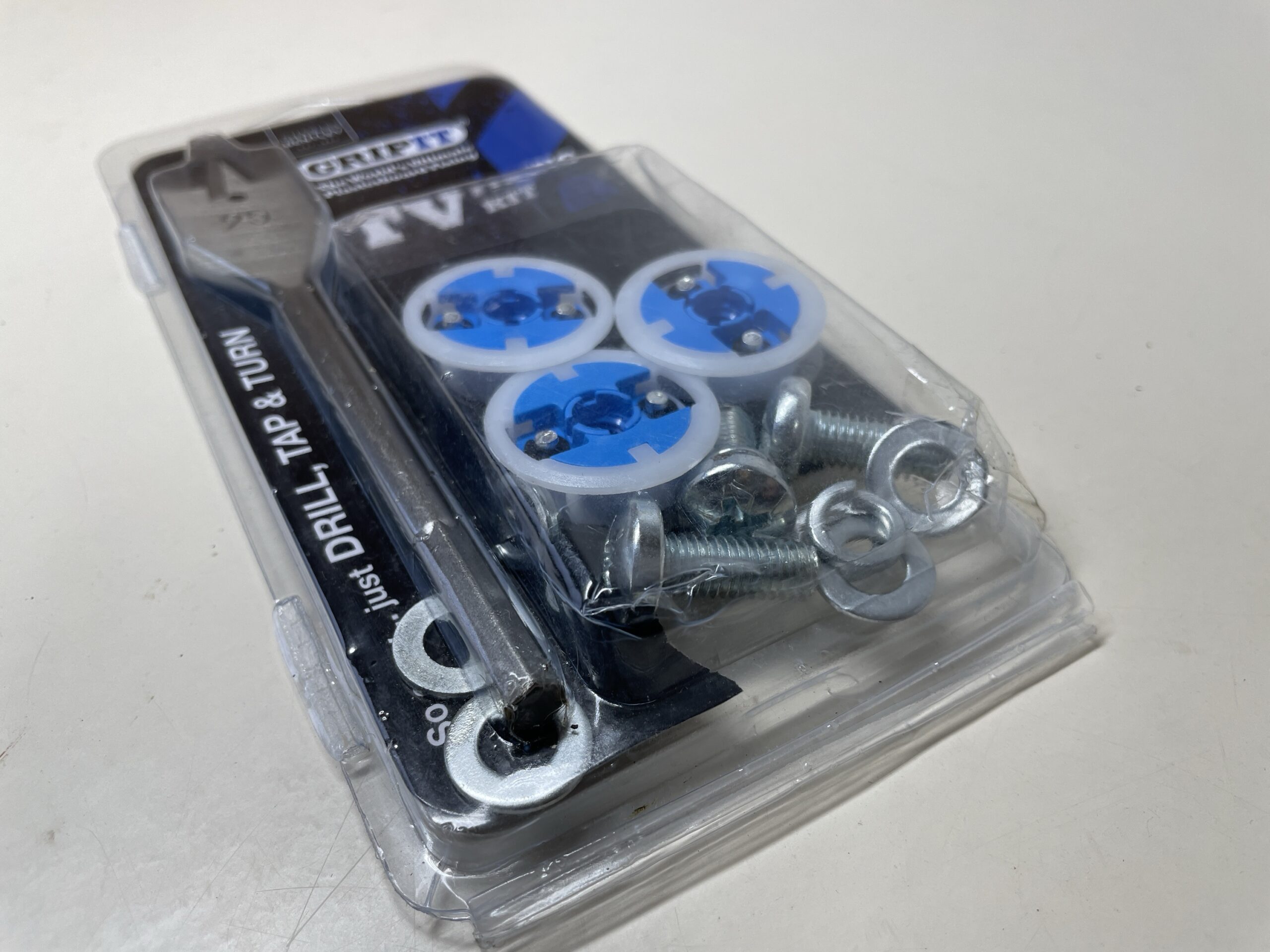 Contains: 3 x Gripit Blue Fixings 25mm. 3 x Locking Washers. 3 x Flat Washers. 3 x Bolts M8 x 30mm. 1 x Flat Drill Bit 25mm.