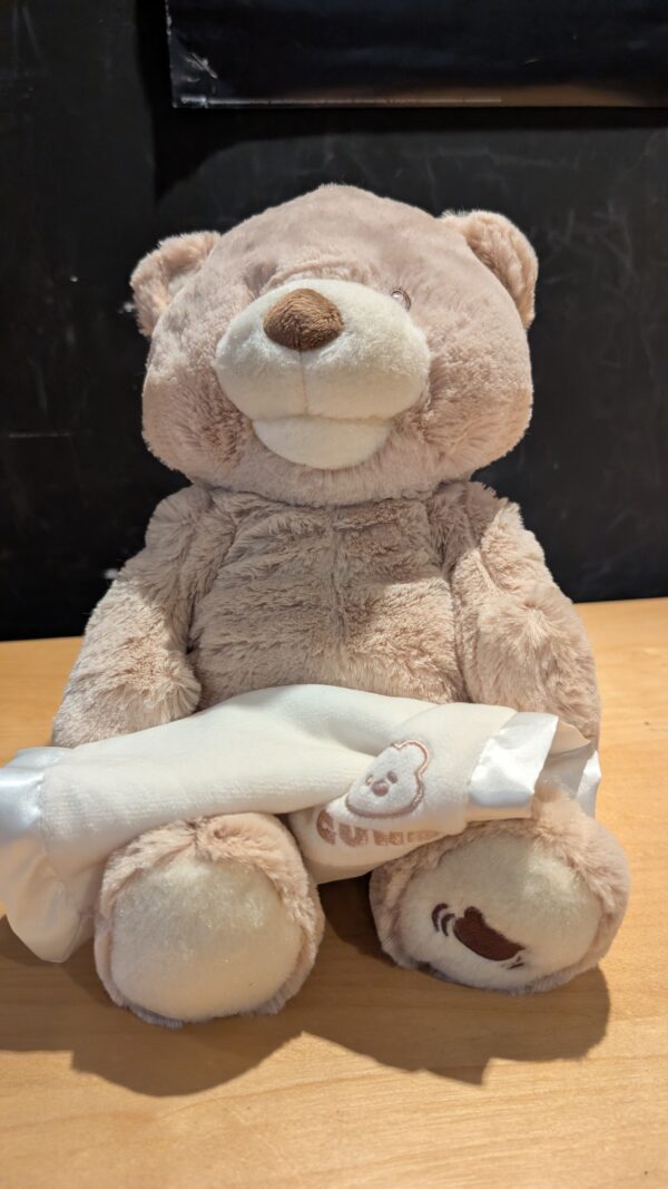 - Includes: 1 Baby GUND Peek-a-Boo Bear Animated Plush, Poly Bag