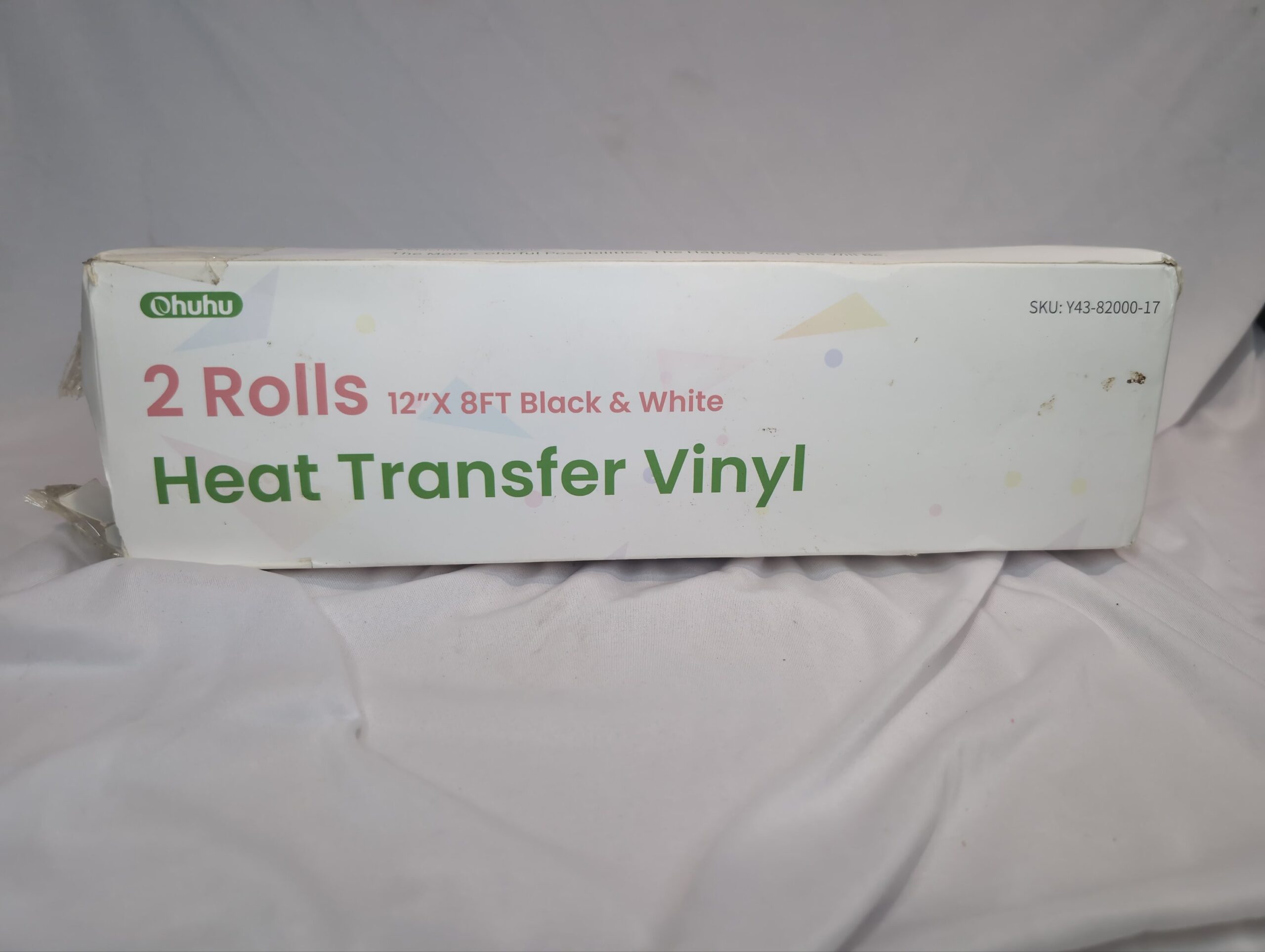 Heat Transfer Vinyl Roll, Ohuhu 12" x 8ft HTV Vinyl, Iron on Vinyl for Cricut & Silhouette Cameo, for T-Shirt, Clothes, Hats, Easy to Cut & Weed (White & Black)