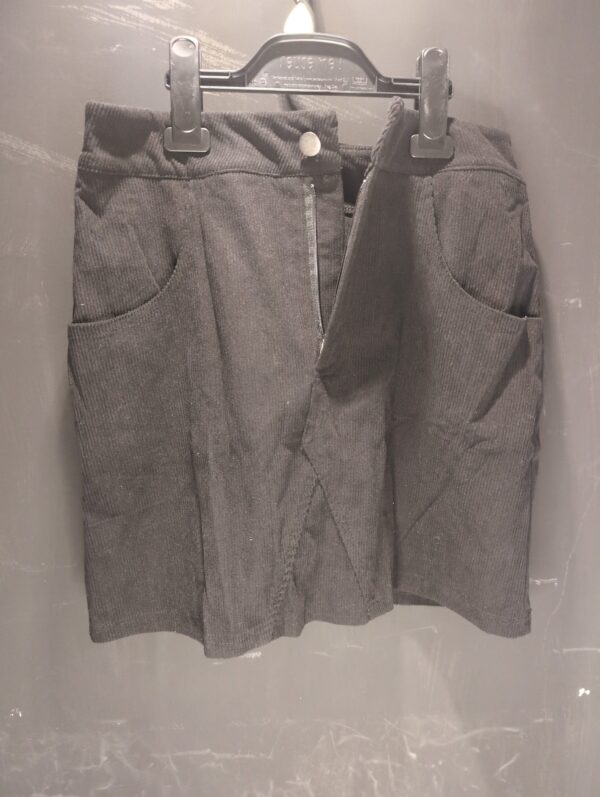 Versatile high-waisted A-line mini skirt in classic black corduroy, perfect for autumn and winter wear. Unused condition, no tags attached.